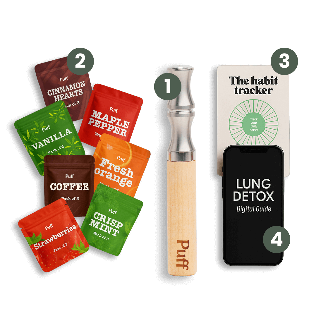 No quitting aid of this type is “FDA-approved,” since the FDA only approves drugs. However, Puff is made from food-grade, plant-based ingredients and crafted to the highest safety standards.